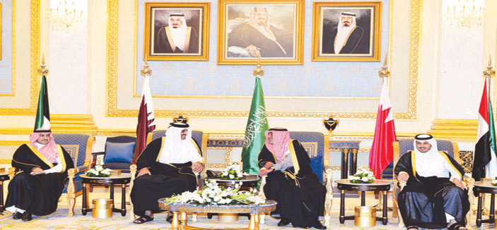 كما كان في استقباله صاحب السمو الملكي الأمير تركي بن عبدالله بن عبدالعزيز أمير منطقة الرياض، ومعالي الأمين العام لمجلس التعاون لدول الخليج العربية الدكتور عبداللطيف الزياني، ووكيل رئيس المراسم الملكية عبدالعزيز العقيلي، وسفير مملكة البحرين لدى المملكة الشيخ حمود بن عبدالله بن حمد آل خليفة, وقائد قاعدة الرياض الجوية المكلف اللواء طيار ركن محمد سعيد الغامدي. بعد ذلك استعرض جلالته حرس الشرف، ثم توجه إلى قاعة التشريفات الملكية.