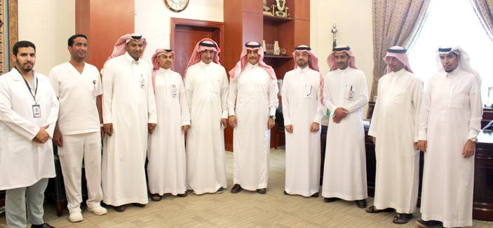 استقبل صاحب السمو الأمير عبدالرحمن آل سعود، محافظ المجمعة مؤخرا في ديوان المحافظة، مدير مستشفى الملك خالد الدكتور مالك الحسيناوي، ومدير قسم الجودة أ.عبدالرحمن اليعيش، وأعضاء الفريق المشارك في مشروع يوم الجودة بصحة الرياض حيث حصل مشروع الفريق على المركز العاشر على مستوى منطقة الرياض، من ضمن ثلاثة وخمسين مشروع .