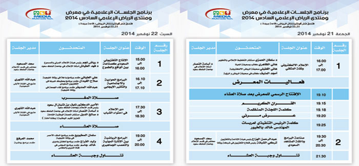 برعاية صاحب السمو الملكي الأمير عبدالله بن مساعد بن عبدالعزيز الرئيس العام لرعاية الشباب تحتضن مدينة الرياض يومي الجمعة والسبت 21 - 22 نوفمبر معرض ومنتدى الرياض الإعلامي السادس والذي سيقام في قاعة بريدة في فندق انتركونتيننتال الرياض حيث سيشمل المعرض العديد من الفعاليات والأجنحة بمشاركة عدة جهات حكومية ومؤسسات إعلامية كبرى وتواجد عدد كبير من أبرز الإعلاميين ونخبة من الأكاديميين المتخصصين في مجال الإعلام، إضافة إلى أن المعرض يستقبل أيضا الزوار وطلاب الجامعات والمهتمين بالشأن الإعلامي وتقنية المعلومات.