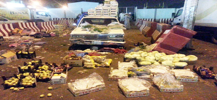 فيما صادرت 2300 كرتون من الخضراوات والفواكه التي يتم بيعها بشكل عشوائي وذلك خلال الحملة الرقابية على مواقع الباعة الجائلين الأجانب.