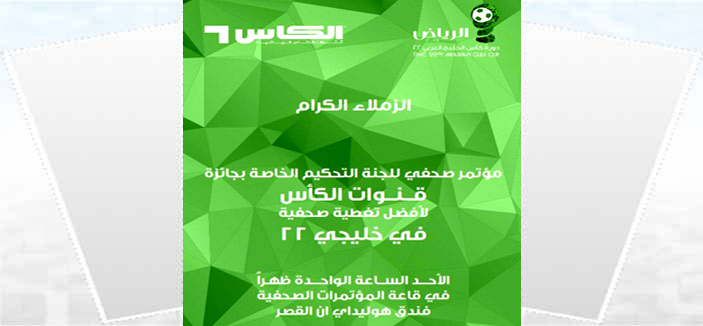 وتعقد لجنة التحكيم في جائزة أفضل تغطية صحافية مؤتمراً صحافياً الساعة الواحدة من ظهر اليوم الأحد في قاعة المركز الإعلامي الرئيسي في فندق «هوليدي إن» الرياض، وتسلط خلاله الضوء على بعض الجوانب الخاصة بالمسابقة والرد على استفسارات الزملاء. وكانت شبكة قنوات الكأس قد أعلنت عن مشاركة 25 صحيفة في مسابقة أفضل تغطية علماً أن الجوائز تصل إلى نصف مليون ريال قطري.