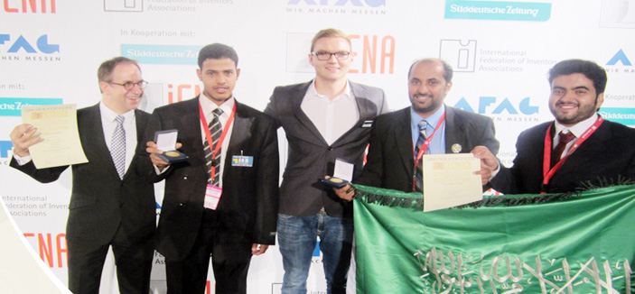 في إنجازٍ يُضاف إلى سلسة الإنجازات التي تحققها الجامعةُ في عددٍ من المجالات ، استطاعت جامعةُ المجمعة ممثلة بمركز الابتكار والأفكار الطلابية المتميزة التابع لوكالة الجامعة للدراسات العليا والبحث العلمي تحقيقَ إنجازٍ متفردٍ بحصولها على أربع ميداليات ( ذهبتين وبرونزيتين ) في معرض (IENA) السادس والستين للاختراعات ، والمقام في مدينة نيوبرغ بألمانيا خلال الفترة من 30 / 10- 2 / 1 1 / 2014م ، حيث حصل الطالب عبد الرحمن الفهيد من كلية الهندسة على ميدالية ذهبية عن ابتكار - مكبس الحماية - ، وحصل الطالب محمد السكران من كلية الهندسة على ميدالية ذهبية عن ابتكار -نظام التبريد- ، كما حصل الطالب حامد العنزي من كلية العلوم الطبية التطبيقية على ميدالية برونزية عن ابتكار - قياس الكلسترول بالدم - ، وحصل ابتكار - السرير الطبي - للطالبين محمد جوخب ومحمد مفرح من كلية العلوم الطبية التطبيقية على ميدالية برونزية ، وقد شارك في هذا المعرض 700 اختراع من أنحاء العالم ، وحققت الجامعةُ تميزًا كبيرًا بحصول كافة ابتكاراتها المشاركة في المعرض على ميداليات ، وتميزت ابتكارات الطلاب بجودة التصميم والتنفيذ مقارنة بنماذجها السابقة بعد توجيه معالي مدير الجامعة بتقديم كامل الدعم وتهيئة جميع الظروف والإمكانيات لتنفيذ هذه الابتكارات وشراء ما يلزم لها.