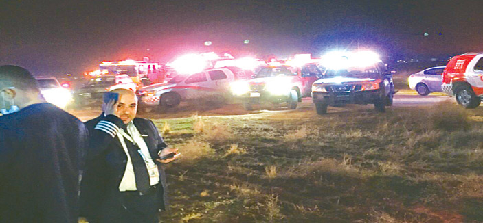 وأوضح المتحدث الرسمي لهيئة الهلال الاحمر السعودي بمنطقة الرياض عبدالله العتيبي أن غرفة عمليات منطقة الرياض تلقت بلاغاً عند الساعة 6.21 مساء أمس الأربعاء، يفيد بوجود حادث سقوط طائرة صغيرة خاصة، وتم توجيه 20 فرقة إسعافية و6 فرق تدخل سريع وطائرتين للإسعاف الجوي. وبيّن العتيبي أنه نتج عن الحادث إصابتين قائد الطائرة ومساعده بإصابتين متوسطتين، ونقلا إلى مستشفى مطار الملك خالد الدولي، مشيرا إلى أن زمن الاستجابة كان سريعا والوصول لموقع الحادث خلال اثني عشرة دقيقة من تقديم البلاغ.
