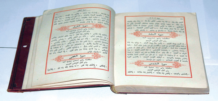 حفل معرض ندوة طباعة المصحف الشريف الذي شهدته مدينة المصطفى صلى الله عليه وسلم مؤخراً بمجموعة نادرة من مخطوطات ونسخ المصحف الشريف على مدار قرون مضت.. وفي هذا التقرير المصور تستعرض «الجزيرة« بعضاً من هذه النسخ والمخطوطات للمصحف الشريف القديمة التي يعود تاريخها إلى مئات السنين، من أبرزها نسخة من المصحف الشريف التي نشرها المستشرق الألماني أبراهام هنكلمان سنة 1106هـ - 1694م في هامبورغ بألمانيا، ونسخة المصحف التي نشرها المستشرق الألماني جوستاف فلوجل طبع سنة 1250 هـ - 1834م، ونسخة مصحف طبع سنة 1264هـ - 1848م المعروف بمصحف (قازان)، ونسخة مصحف كتبه الخطاط الكبير علي بن هلال المعروف باسم «ابن البواب»، والمصحف المنسوب إلى عثمان بن عفان رضى الله عنه في نسخه الثلاث، ومصحف فاضل باشا الذي كتبه أحد المهاجرين الداغستانين في رجب سنة 1265، ومصحف كتبه حمد الله بن مصطفى الأماسي، ويضم المعرض عدة مصاحف كتبها الخطاط التركي المشهور حافظ عثمان بن علي المتوفى سنة 1110هـ.