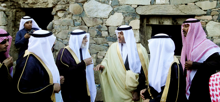 وقد توجه سموه فور وصوله للمحافظة إلى قرية سبت العلايا التراثية، حيث تجول سموه في القرية، ووجّه المسئولين في مركز التراث العمراني المرافقين لسموه بتقديم تصور لتأهيل وتطوير القرية، ثم توجه سموه لمطل منتزه السد، بعدها اتجه إلى مقر الاحتفال في نادي الزيتون، حيث اطلع على معرض لأبرز المشاريع السياحية والحضارية في المحافظة.