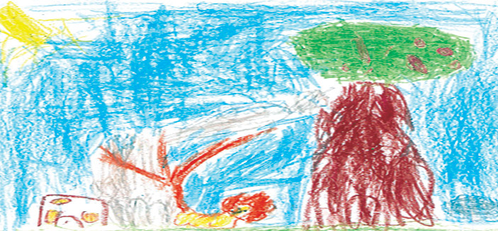 فتجيبه: (لدينا طعام كثير يفيض عن حاجتنا ولا أرى داعي للخروج) لم يجب الأسد الا أنه بعد حين انتفض ناهضاً وأطلق زئيراً عالياً، فأدركت اللبوة أنه في طريقه إلى الغابة لينقض على الحيوانات ويفترسها استلقت اللبوة تحت أشعة الشمس وأغمضت عينيها، لكنها أحست بشيء يتراقص فوق جسدها، ففتحت عينيها بعد، جرادة تصيح في أذنها: (لماذا الكسل!!) فردت اللبوة: (وماذا أفعل أيتها الجرادة النشيطة) فردت الجرادة: (تتريضين.. تتجولين.. تتطلعين إلى جمال الطبيعة) فقالت اللبوة: (يبدو أنني أكثرت من الأكل أمس وأصبت بآلام التخمة).