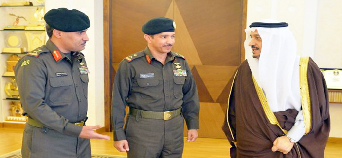 استقبل صاحب السمو الملكي الأمير فيصل بن بندر بن عبدالعزيز أمير منطقة القصيم في مكتب سموه بمقر ديوان الإمارة في مدينة بريدة مؤخراً اللواء الطيار الركن ناصر بن عبيد بن عفيف قائد طيران القوات البرية بالمملكة الذي يزور المنطقة حالياً بحضور اللواء طيار ركن عبدالله الطويلعي قائد معهد طيران القوات البرية بمنطقة القصيم. هذا وقد رحب به سموه وجرى خلال اللقاء تبادل الأحاديث الودية وأشار سموه إلى أن اهتمام خادم الحرمين الشريفين وسمو ولي العهد نائب رئيس مجلس الوزراء وزير الدفاع مكنّت القوات المسلحة من أن تكون في كامل جاهزيتها للدفاع عن الوطن وفق أعلى المستويات مشيداً سموه بجهود اللواء طيار ركن ناصر بن عفيف وزملائه من منسوبي القوات البرية.