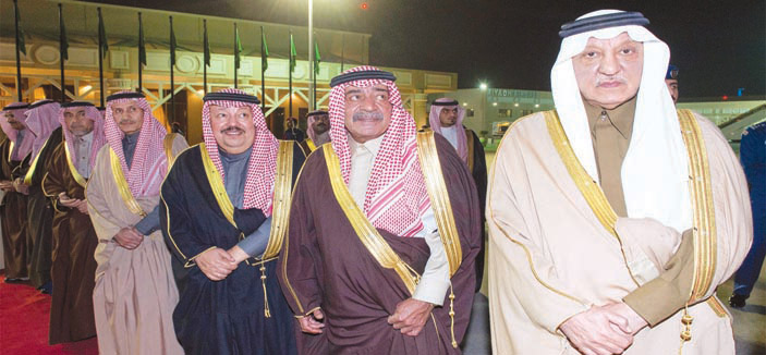 وكان في استقبال سمو ولي العهد بمطار قاعدة الرياض الجوية صاحب السمو الملكي الأمير خالد الفيصل وزير التربية والتعليم ، وصاحب السمو الأمير خالد بن فهد بن خالد، وصاحب السمو الملكي الأمير مقرن بن عبدالعزيز آل سعود ولي ولي العهد النائب الثاني لرئيس مجلس الوزراء المستشار والمبعوث الخاص لخادم الحرمين الشريفين، وصاحب السمو الملكي الأمير منصور بن سعود بن عبدالعزيز، وصاحب السمو الملكي الأمير سعود بن سعد بن عبدالعزيز، وصاحب السمو الملكي الأمير خالد بن سعد بن عبدالعزيز، وصاحب السمو الملكي الأمير طلال بن سعود بن عبدالعزيز، وصاحب السمو الأمير الدكتور عبدالرحمن بن سعود الكبير، وصاحب السمو الملكي الأمير خالد بن بندر بن عبدالعزيز رئيس الاستخبارات العامة، وصاحب السمو الملكي الأمير الدكتور منصور بن متعب بن عبدالعزيز وزير الشؤون البلدية والقروية، وصاحب السمو الأمير سعود بن سلمان بن محمد، وصاحب السمو الأمير محمد بن سلمان بن محمد، وصاحب السمو الملكي الأمير منصور بن ناصر بن عبدالعزيز مستشار خادم الحرمين الشريفين، وصاحب السمو الملكي الأمير فيصل بن تركي بن عبدالعزيز المستشار في وزارة البترول والثروة المعدنية، وصاحب السمو الملكي الأمير فيصل بن عبدالمجيد بن عبدالعزيز، وصاحب السمو الملكي الأمير تركي بن عبدالله بن عبدالعزيز أمير منطقة الرياض، وصاحب السمو الملكي الأمير عبدالعزيز بن سعود بن نايف بن عبدالعزيز، وصاحب السمو الملكي الأمير سعود بن سلمان بن عبدالعزيز، وصاحب السمو الملكي الأمير تركي بن سلمان بن عبدالعزيز، وصاحب السمو الملكي الأمير بندر بن سلمان بن عبدالعزيز. كما كان في استقبال سموه معالي رئيس هيئة الأركان العامة الفريق أول ركن عبدالرحمن بن صالح البنيان، وقادة أفرع القوات المسلحة، وقائد قاعدة الرياض الجوية اللواء طيار ركن محمد بن سعيد الغامدي ، وجمع من المواطنين. وضم الوفد الرسمي المرافق لسمو ولي العهد صاحب السمو الملكي الأمير عبدالعزيز بن عبدالله بن عبدالعزيز نائب وزير الخارجية، وصاحب السمو الملكي الأمير محمد بن سلمان بن عبدالعزيز وزير الدولة عضو مجلس الوزراء رئيس ديوان سمو ولي العهد المستشار الخاص لسموه، ومعالي وزير الدولة عضو مجلس الوزراء الدكتور مساعد بن محمد العيبان ، ومعالي وزير المالية الدكتور إبراهيم بن عبدالعزيز العساف. وقد وصل بمعية سموه معالي المستشار في ديوان سمو ولي العهد الكتور ماجد بن عبدالله القصبي، ومعالي مدير عام الجمارك الأستاذ صالح الخليوي، ومعالي المستشار رئيس الشؤون الخاصة في مكتب سمو وزير الدفاع الأستاذ خالد بن محمد الريس ومدير عام مكتب سمو وزير الدفاع المكلف الأستاذ فهد بن محمد العيسى ورئيس الشؤون الخاصة لسمو ولي العهد المكلف الأستاذ حازم بن مصطفى زقزوق. حفظ الله سمو ولي العهد في سفره وإقامته. وكان صاحب السمو الملكي الأمير سلمان بن عبدالعزيز آل سعود ولي العهد نائب رئيس مجلس الوزراء وزير الدفاع قد غادر بحفظ الله ورعايته قطر مساء امس بعد أن ترأس وفد المملكة المشارك في الدورة الخامسة والثلاثين للمجلس الأعلى لمجلس التعاون لدول الخليج العربية نيابة عن خادم الحرمين الشريفين الملك عبدالله بن عبدالعزيز آل سعود - رعاه الله -. وكان في وداع سمو ولي العهد لدى مغادرته مقر انعقاد القمة صاحب السمو الشيخ تميم بن حمد آل ثاني أمير دولة قطر ومعالي الأمين العام لمجلس التعاون لدول الخليج العربية الدكتور عبداللطيف بن راشد الزياني.