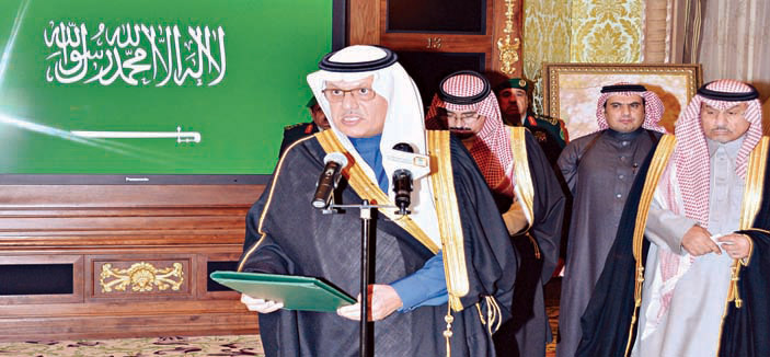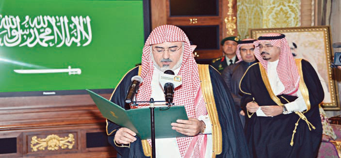 حضر أداء القسم صاحب السمو الملكي الأمير سلمان بن عبدالعزيز آل سعود ولي العهد نائب رئيس مجلس الوزراء وزير الدفاع وصاحب السمو الملكي الأمير سعود الفيصل وزير الخارجية، وصاحب السمو الملكي الأمير عبدالإله بن عبدالعزيز آل سعود مستشار خادم الحرمين الشريفين وصاحب السمو الملكي الأمير مقرن بن عبدالعزيز آل سعود ولي ولي العهد النائب الثاني لرئيس مجلس الوزراء المستشار والمبعوث الخاص لخادم الحرمين الشريفين، وصاحب السمو الملكي الأمير خالد بن بندر بن عبدالعزيز رئيس الاستخبارات العامة، وصاحب السمو الملكي الأمير متعب بن عبدالله بن عبدالعزيز وزير الحرس الوطني، وصاحب السمو الملكي الأمير محمد بن نايف بن عبدالعزيز وزير الداخلية، وصاحب السمو الملكي الأمير عبدالعزيز بن عبدالله بن عبدالعزيز نائب وزير الخارجية، وصاحب السمو الملكي الأمير تركي بن عبدالله بن عبدالعزيز أمير منطقة الرياض، وصاحب السمو الملكي الأمير محمد بن سلمان بن عبدالعزيز وزير الدولة عضو مجلس الوزراء رئيس ديوان سمو ولي العهد المستشار الخاص لسموه، وصاحب السمو الملكي الأمير عبدالمجيد بن عبدالإله بن عبدالعزيز، ومعالي وزير الدولة عضو مجلس الوزراء الدكتور مساعد بن محمد العيبان، ومعالي وزير المالية الدكتور إبراهيم بن عبدالعزيز العساف.