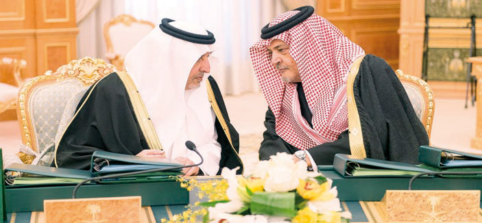 وأوضح وزير الثقافة والإعلام، الدكتور عبدالعزيز بن عبدالله الخضيري، في بيانه لوكالة الأنباء السعودية عقب الجلسة، أن سمو ولي العهد أطلع المجلس بعد ذلك على مباحثاته مع دولة رئيس الوزراء بجمهورية مقدونيا نيكولا غروافسكي، وما تم خلالها من استعراض لأوجه التعاون الثنائي بين البلدين وسبل تطويرها في شتى المجالات. وأطلع صاحب السمو الملكي الأمير محمد بن نايف بن عبدالعزيز وزير الداخلية مجلس الوزراء على الجهود المتواصلة التي يبذلها رجال الأمن للتصدي للأعمال الإرهابية، واتخاذ الإجراءات النظامية حيال كل من يخطط للإفساد وإحداث الفوضى. وقد أشاد مجلس الوزراء في هذا الشأن بما حققته الأجهزة الأمنية من إنجازات كبيرة - ولله الحمد - منوهاً بتعاون أبناء المنطقة؛ ما كان له الأثر في سرعة كشف من وقف خلف الحادث الإرهابي الذي وقع في بلدة العوامية مساء يوم الأحد 22 / 2 / 1436هـ، مؤكداً أن كل من تسول له نفسه العبث بأمن الوطن والمواطن فإن يد العدالة ستطولهم. ورحب المجلس بالبيان الصادر في ختام مؤتمر الدول الأطراف الموقعة على اتفاقية جنيف الرابعة لحماية المدنيين، وتأكيده ضرورة تطبيق الاتفاقية والقانون الدولي في الأراضي الفلسطينية المحتلة، وأهمية ذلك للتوصل إلى السلام العادل والدائم، مجدداً تأكيد المملكة أن الالتزام بقواعد الشرعية الدولية والوفاء بالتعهدات هو أفضل وسيلة لتحقيق الأمن والاستقرار. وندد مجلس الوزراء بالاعتداء الإرهابي الذي استهدف إحدى المدارس في شمال غرب باكستان وما نتج منه من ضحايا وإصابات، وعده عملاً إرهابياً وجرماً يتنافى مع القيم والمبادئ التي جاءت بها الشرائع السماوية، التي حرّمت قتل النفس إلا بالحق، معرباً عن أحر التعازي وصادق المواساة لجمهورية باكستان حكومة وشعباً ولأسر الضحايا، وتمنياتها للمصابين بالشفاء العاجل.