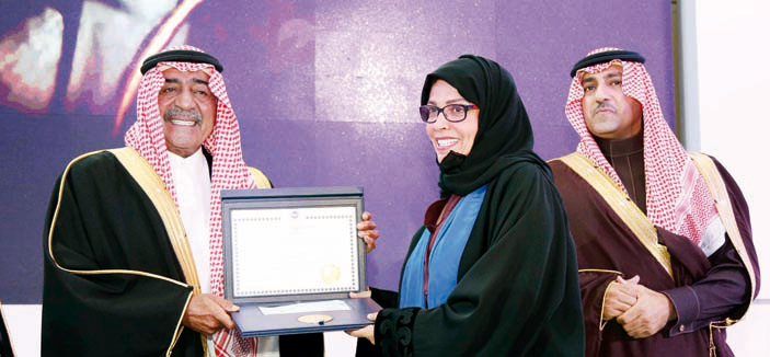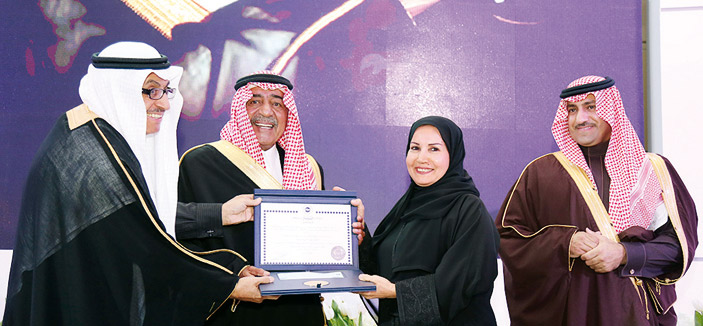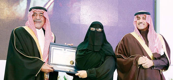 تلا ذلك كلمة لراعي الحفل الأمير مقرن بن عبدالعزيز ولي ولي العهد نيابة عن خادم الحرمين الشريفين، أكد فيها دور الراحلة الريادي في مجتمعها وأسرتها وأياديها البيضاء، وأنها تمثل أنموذجاً يحتذى، وأن مثل هذه المبادرات الخيرة والجوائز تجعل المجتمع أكثر تنمية وتعاضداً.