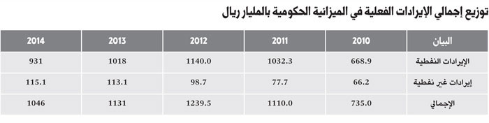 ومن الواضح أيضا أن استمرار وتيرة النمو في الإيرادات غير النفطية في2014م والتي سجلت 115.1 مليار ريال قد عوض النقص في الإيرادات النفطية، والذي بلغ حوالي 87 مليار ريال في2014م مقارنة بـ2013م.