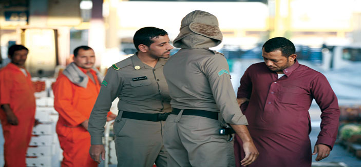 وأسفرت عمليات التفتيش عن ضبط أكثر من (205) مخالف لتعليمات السعودة ولنظام العمل والإقامة من جنسيات مختلفة ومجهولي الهوية. وجاءت عملية القبض على المخالفين عقب تنفيذ خطط مسبقة وتحديد مواقع المخالفين من قبل الحملة، وشملت عمليات التفتيش سوق الخضار الذي تكدس فيه العمالة السائبة والمخالفة لنظام العمل والإقامة.