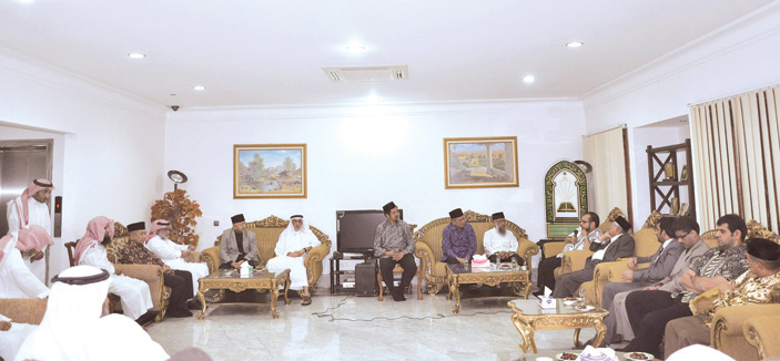 على شرف سفير خادم الحرمين الشريفين لدى إندونيسيا الأستاذ مصطفى بن إبراهيم المبارك أقامت الملحقية الدينية في سفارة المملكة حفل تكريم لفضيلة الشيخ الدكتور عبدالعزيز بن عبدالله العمار/ وكيل وزارة الشؤون الإسلامية والأوقاف والدعوة والإرشاد للشؤون الإسلامية بمناسبة تقاعده من العمل، وقد حضر الحفل معالي الدكتور محمد مفتوح بسيوني الوزير الأسبق لوزارة الشؤون الدينية في إندونيسيا والعديد من رؤساء الجمعيات والاتحادات الإسلامية وكبار الدعاة والمسؤولين بالسفارة، حيث ألقى الملحق الديني كلمة أشاد فيها بجهود الدكتور عبدالعزيز العمار عندما كان مديراً لمعهد العلوم الإسلامية والعربية بجاكرتا حتى أصبح اسمه مرتبطاً ولصيقاً بالمعهد، فلا يذكر المعهد إلا ويذكر اسم فضيلته، فهو ممن بذل جهوداً جبارة لترسيخ المعهد في المجتمع الإندونيسي، ثم تحدث عن فضيلته عندما كان وكيلاً لوزارة الشؤون الإسلامية وبجهوده في دعم مكانتها في الخارج وعمله الدؤوب لتطوير العمل فيها ملتمساً من فضيلته استمرار العطاء المبارك خدمة للدين ثم للوطن حسب ما يصبو إليه ولاة الأمر - حفظهم الله -، ثم ألقى سعادة السفير كلمة أشاد فيها بالشيخ العمار وأنه يعرفه منذ سنوات عديدة رجلاً موسوعياً في العمل الإسلامي بالخارج وقد اكتسب محبة واحترام الجمعيات الإسلامية والدعاة في كثير من بلدان العالم ملتمساً من فضيلته استمرار التعاون مع السفارة في جاكرتا لخبرته العريقة بإندونيسيا مؤكداً أن فضيلته هو من الرجال الذين بذلوا جهدهم ووقتهم لأجل إبراز مكانة المملكة وريادتها في العمل الإسلامي وفق توجيهات قادة البلاد - حفظهم الله -، ثم ألقى الدكتور/ العمار/ كلمة حمد الله وشكره على تسخيره له لخدمة الدعوة الإسلامية شاكراً لولاة الأمر ثقتهم فيه طوال فترة عمله، مبيناً أن ما قام به من جهد هو واجب شرعي أولاً ثم خدمة لبلاد الحرمين الشريفين التي يبذل ولاتها جميع الإمكانات لخدمة أبناء المسلمين في أصقاع المعمورة، كما شكر للشعب والحكومة الإندونيسية حسن المعاملة وكرم الضيافة والترحيب التام للجهود السعودية وأنه لمس ذلك وعايشه عندما كان مديراً لمعهد العلوم الإسلامية والعربية وكذلك عندما كان وكيلاً لوزارة الشؤون الإسلامية، مبيناً أن مكتب الملحق الديني يجد كل العناية والمباركة منهم.