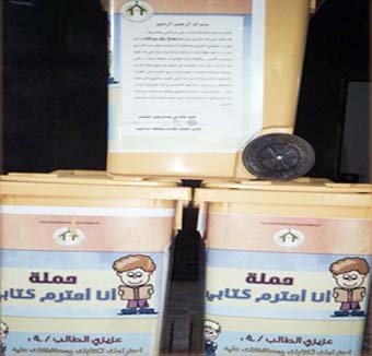 أطلق المستودع الخيري التابع للجمعية الخيرية بمحافظة المزاحمية بالتزامن مع أول أيام الاختبارات حملة «أنا أحترم كتابي» في عدد من مدارس المحافظة بتهيئة حاويات صممت خصيصا لتجميع الكتب والدفاتر والمذكرات عند مداخل المدرسة أو في أماكن بارزة والإعلان عن ذلك بوضع عبارات إرشادية وتوعوية. وأوضح المشرف على المستودع الخيري بالمزاحمية عبدالله المبدل أن الهدف من الحملة توعية الطلاب والطالبات بأهمية الحفاظ على الكتاب المدرسي واحترامه كواجب أخلاقي وسلوك حضاري، والمحافظة عليه من الامتهان لكون بعض الكتب تحتوي على آيات قرآنية، وأحاديث نبوية شريفة، وعدم إلقائه أثناء فترة الاختبارات . والاستفادة أيضا من الكتب في إعادة تدوير الورق.