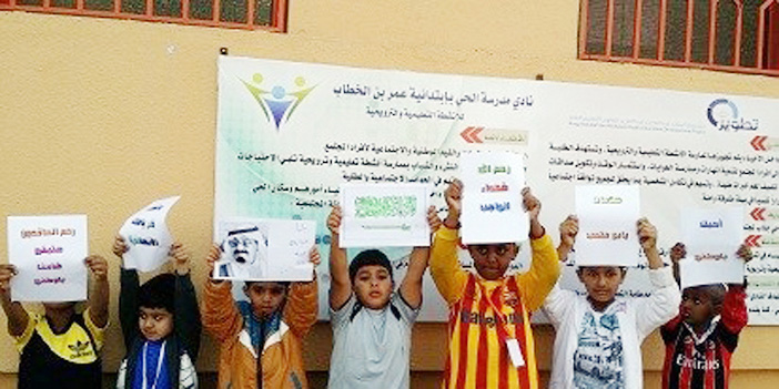 وكان ذلك من خلال إقامة مسابقة لأعضاء نادي مدرسة الحي من طلاب المرحلة الابتدائية , حيث قام الطلاب بتلوين مجموعة من صور خادم الحرمين الشريفين , وبعض العبارات والشعارات التي تعبّر عن حب الوطن.