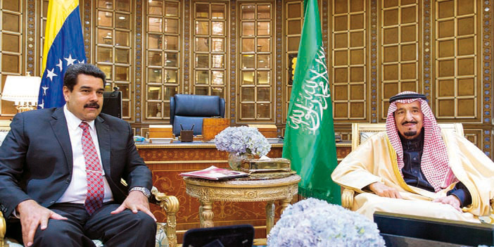 عقد صاحب السمو الملكي الأمير سلمان بن عبد العزيز آل سعود ولي العهد نائب رئيس مجلس الوزراء وزير الدفاع في قصره بالرياض أمس جلسة مباحثات رسمية مع فخامة الرئيس نيكولاس مادورو موروس رئيس جمهورية فنزويلا. وفي بداية الجلسة رحب سمو ولي العهد بفخامته ومرافقيه في بلدهم الثاني المملكة، فيما عبر فخامته عن سعادته بزيارة المملكة ولقائه سمو ولي العهد. كما اطمأن الرئيس الفنزويلي من سمو ولي العهد على صحة خادم الحرمين الملك عبد الله بن عبد العزيز آل سعود ، متمنيّاً له دوام العافية. وجرى خلال جلسة المباحثات بحث العلاقات الثنائية ومجالات التعاون بين البلدين والسبل الكفيلة بدعمها وتعزيزها، بالإضافة إلى استعراض مستجدات الأحداث على الساحة الدولية. حضر جلسة المباحثات صاحب السمو الملكي الأمير مقرن بن عبد العزيز آل سعود ولي ولي العهد النائب الثاني لرئيس مجلس الوزراء المستشار والمبعوث الخاص لخادم الحرمين الشريفين، وصاحب السمو الملكي الأمير خالد بن بندر بن عبد العزيز رئيس الاستخبارات العامة وصاحب السمو الملكي الأمير متعب بن عبد الله بن عبد العزيز وزير الحرس الوطني، وصاحب السمو الملكي الأمير عبد العزيز بن عبد الله بن عبد العزيز نائب وزير الخارجية، وصاحب السمو الملكي الأمير تركي بن عبد الله بن عبد العزيز أمير منطقة الرياض، وصاحب السمو الملكي الأمير محمد بن سلمان بن عبد العزيز وزير الدولة عضو مجلس الوزراء رئيس ديوان سمو ولي العهد المستشار الخاص لسموه، ومعالي وزير البترول والثروة المعدنية المهندس علي بن إبراهيم النعيمي، ومعالي وزير الدولة عضو مجلس الوزراء الدكتور مساعد بن محمد العيبان، ومعالي وزير المالية الدكتور إبراهيم بن عبد العزيز العساف، وسفير خادم الحرمين الشريفين لدى فنزويلا جمال بن إبراهيم ناصف. فيما حضر من الجانب الفنزويلي، المناضلة الأولى في الحكومة حرم فخامة الرئيس سيليا فلوريس، ومعالي وزير الخارجية ديلسي رودريجيز، ومعالي وزير البترول اسدروبال تشافيز، ومعالي وزير التخطيط ريكاردو مينينديز، ومعالي وزير الاقتصاد والمالية والمصارف العامة رودولفو ماركو تورريس، ومعالي وزيرة الاتصالات والمعلومات جاكلين فاريا، ومعالي وزير الدفاع فلاديمير بادرينو، وسفير فنزويلا لدى المملكة خوسيبا اتشوتيغي.