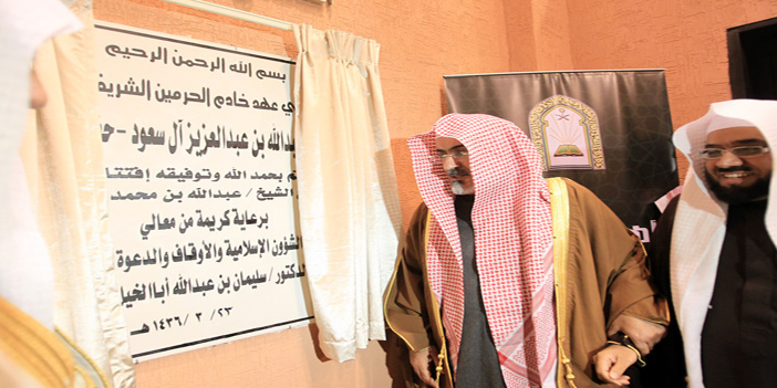 أكد وزير الشؤون الإسلامية والأوقاف والدعوة والإرشاد الدكتور سليمان بن عبدالله أبالخيل على الرعاية المستمرة، والعناية الفائقة التي أولتها المملكة لبيوت الله منذ عهد مؤسسها الملك عبد العزيز بن عبدالرحمن آل سعود - طيب الله ثراه - ومن بعده أبنائه البررة الذين ساروا على نهجه، وطريقه في تأسيس المساجد وتشييدها وإعمارها حيث تقف هذه المساجد عزيزة شامخة مهابة الجانب في كل شبر من أراضي هذه البلاد المباركة، مشيداً في ذات الوقت بما أولاها الملك عبدالله بن عبدالعزيز - رعاه الله ومتعة بالصحة والعافية - من عناية بالحرم المكي والحرم النبوي حيث يشهدان حالياً أعظم توسعة لهما في التاريخ.