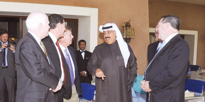 استقبل صاحب السمو الملكي الأمير متعب بن عبد الله بن عبد العزيز وزير الحرس الوطني في مزرعة سموه بالجنادرية بعد ظهر أمس عضو مجلس الشيوخ الأمريكي رئيس لجنة الخدمات المسلحة في مجلس الشيوخ السيناتور جون ماكين والوفد المرافق له، حيث اطمأن على صحة خادم الحرمين الشريفين الملك عبد الله بن عبد العزيز آل سعود -حفظه الله- وتمنياته له بموفور الصحة والعافية.