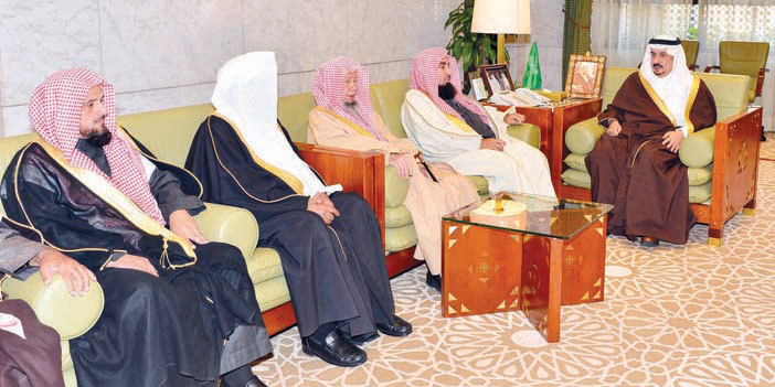 كما استقبل صاحب السمو الملكي الأمير فيصل بن بندر بن عبد العزيز أمير منطقة الرياض في مكتب سموه بقصر الحكم أمس معالي رئيس محكمة الاستئناف بمنطقة الرياض الشيخ عبد العزيز بن صالح الحميد يرافقه عدد من قضاة المحكمة الذين قدموا للسلام على سموه وتهنئته بتعيينه أميراً للمنطقة. وأعرب سموه عن شكره لهم على ما أبدوه من مشاعر طيبة ، داعياً الله العلي القدير للجميع التوفيق لما يحبه ويرضاه.