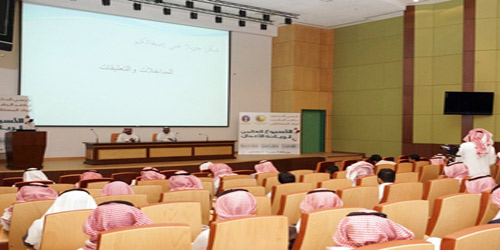 من جانبه، عبَّر الدكتور عيد الحيسوني عميد السنة التحضيرية عن حرص الشعب السعودي على الوقوف يداً بيد مع القيادة الرشيدة، والوقوف خلفها لمواصلة العطاء وتحقيق الإنجازات واستثمار كل الإمكانيات البشرية والمادية للاستمرار في تنمية الوطن وحمايته، والانتقال من الاستثمار المعرفي إلى اقتصاد المعرفة، بتعزيز قدرات المواطن ورفع كفاءته. وقال: يُقدر خادم الحرمين الشريفين الملك سلمان بن عبدالعزيز آل سعود العلماء ودورهم في المجتمع، وهذا ما سيسهل للمملكة المُضي قدماً نحو التنمية المستدامة للحفاظ على النمو الاقتصادي الوطني وحفظ الموارد الطبيعية والبيئية للوطن وتنمية المجتمع السعودي، والقضاء على نسبة كبيرة من الفقر. وأبدى الحيسوني تفاؤله بالمرحلة المقبلة في ظل قيادة تتمسك بكتاب الله وسنة نبيه، وتعلي من شأن العلم والعلماء.