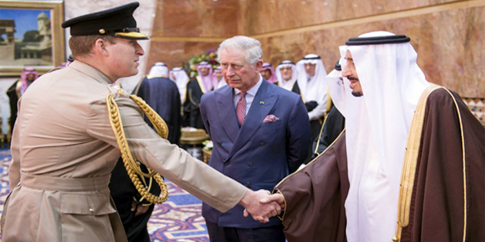 استقبل خادم الحرمين الشريفين الملك سلمان بن عبدالعزيز آل سعود -حفظه الله- في قصره بالرياض أمس صاحب السمو الملكي الأمير تشارلز ولي عهد المملكة المتحدة أمير ويلز والوفد المرافق له. وفي بداية الاستقبال صافح الأمير تشارلز أصحاب السمو الملكي الأمراء، فيما صافح خادم الحرمين الشريفين -أيده الله- الوفد المرافق لسموه.