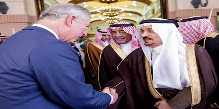 ورحب خادم الحرمين الشريفين بالأمير تشارلز ومرافقيه في المملكة، فيما عبر ولي عهد بريطانيا عن سعادته بزيارة المملكة ولقائه خادم الحرمين الشريفين. وجرى خلال الاستقبال تبادل الأحاديث الودية، واستعراض العلاقات الثنائية بين البلدين الصديقين.. عقب ذلك أقام خادم الحرمين الشريفين مأدبة غداء تكريماً للأمير تشارلز بمناسبة زيارته للمملكة.
