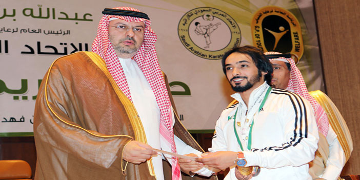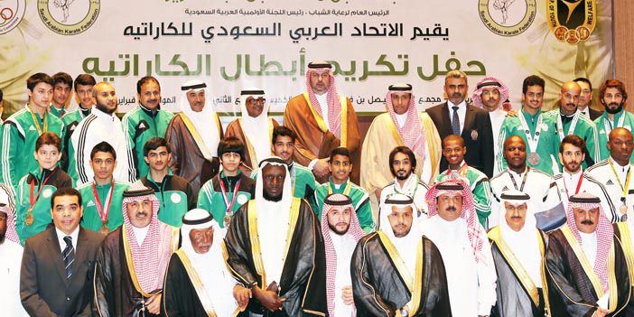 كرم صاحب السمو الملكي الأمير عبدالله بن مساعد رئيس اللجنة الأولمبية العربية السعودية الرئيس العام لرعاية الشباب لاعبي المنتخب السعودي للكاراتيه وأولياء أمورهم بحضور وكيل الرئيس العام لرعاية الشباب الدكتور أحمد السناني ورئيس الاتحاد السعودي للكاراتيه الدكتور إبراهيم القناص ورئيس لجنة الحكام بالاتحاد الآسيوي ليم باترك وأعضاء مجلس إدارة الاتحاد السعودي للكاراتيه وعدد من المسؤولين في الرئاسة العامة لرعاية الشباب والمسؤولين في اللجنة الأولمبية العربية السعودية والاتحادات الرياضية، وأولياء أمور اللاعبين المكرمين بالإضافة إلى رجال الصحافة والإعلام وذلك خلال الحفل التكريمي الذي أقامه الاتحاد السعودي للكاراتيه ظهر أمس الخميس في قاعة المحاضرات بمجمع الأمير فيصل بن فهد الأولمبي بالرياض.