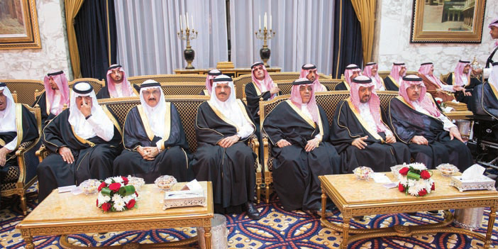 حضر مأدبة الغداء صاحب السمو الأمير بندر بن محمد بن عبدالرحمن وصاحب السمو الأمير فيصل بن محمد بن سعود الكبير وصاحب السمو الأمير خالد بن فهد بن خالد وصاحب السمو الملكي الأمير محمد بن سعد بن عبدالعزيز وصاحب السمو الملكي الأمير مقرن بن عبدالعزيز آل سعود ولي العهد نائب رئيس مجلس الوزراء وصاحب السمو الملكي الأمير تركي الفيصل وصاحب السمو الملكي الأمير مشعل بن سعود بن عبدالعزيز وصاحب السمو الأمير فيصل بن عبدالعزيز بن فيصل وصاحب السمو الملكي الأمير فيصل بن بندر بن عبدالعزيز أمير منطقة الرياض وصاحب السمو الأمير بندر بن عبدالله بن عبدالرحمن وصاحب السمو الملكي الأمير سعود بن سعد بن عبدالعزيز وصاحب السمو الملكي الأمير عبدالرحمن بن ناصر بن عبدالعزيز وصاحب السمو الملكي الأمير خالد بن سعد بن عبدالعزيزوصاحب السمو الأمير تركي بن محمد بن سعود وكيل وزارة الخارجية للعلاقات متعددة الأطراف وصاحب السمو الملكي الأمير سعود بن فهد بن عبدالعزيز وصاحب السمو الملكي الأمير طلال بن سعود بن عبدالعزيز وصاحب السمو الملكي الأمير نايف بن سعود بن عبدالعزيز وصاحب السمو الأمير بدر بن فهد بن سعد وصاحب السمو الأمير خالد بن سعد وصاحب السمو الأمير عبدالرحمن بن سعود الكبير وصاحب السمو الملكي الأمير محمد بن مشاري بن عبدالعزيز وصاحب السمو الملكي الأمير خالد بن بندر بن عبدالعزيز مستشار خادم الحرمين الشريفين وصاحب السمو الملكي الأمير منصور بن متعب بن عبدالعزيز وزير الدولة عضو مجلس الوزراء مستشار خادم الحرمين الشريفين وصاحب السمو الملكي الأمير متعب بن عبدالله بن عبدالعزيز وزير الحرس الوطني وصاحب السمو الأمير سعود بن عبدالله بن ثنيان رئيس الهيئة الملكية للجبيل وينبع وصاحب السمو الملكي الأمير الدكتور فيصل بن محمد بن سعود بن عبدالعزيز وصاحب السمو الأمير تركي بن عبدالله بن محمد مستشار خادم الحرمين الشريفين وصاحب السمو الملكي الأمير سطام بن سعود بن عبدالعزيز وصاحب السمو الملكي الأمير الوليد بن طلال بن عبدالعزيز وصاحب السمو الأمير نواف بن محمد وصاحب السمو الأمير عبدالعزيز بن فهد بن سعد وصاحب السمو الأمير فيصل بن سعود بن محمد وصاحب السمو الملكي الأمير الوليد بن سعود بن عبدالعزيز وصاحب السمو الأمير بدر بن عبدالله بن عبدالرحمن وصاحب السمو الأمير الدكتور مشعل بن عبدالله بن مساعد مستشار خادم الحرمين الشريفين وصاحب السمو الأمر خالد بن سعد بن خالد وصاحب السمو الملكي الأمير محمد بن نايف بن عبدالعزيز ولي ولي العهد النائب الثاني لرئيس مجلس الوزراء وزير الداخلية وصاحب السمو الأمير بندر بن سعود بن محمد رئيس الهيئة السعودية للحياة الفطرية وصاحب السموالملكي الأمير عبدالعزيز بن سلمان بن عبدالعزيز نائب وزير البترول والثروة المعدنية وصاحب السمو الملكي الأمير عبدالعزيز بن بندر بن عبدالعزيز وصاحب السمو الأمير محمد بن سعود بن خالد وكيل وزارة الخارجية لشؤون المعلومات والتقنية وصاحب السمو الأمير الدكتور بندر بن سلمان بن محمد وصاحب السمو الملكي الأمير الدكتور عبدالعزيز بن سطام بن عبدالعزيز مستشار خادم الحرمين الشريفين وصاحب السمو الملكي الأمير فيصل بن تركي بن عبدالعزيز المستشار بوزارة البترول والثروة المعدنية وصاحب السمو الملكي الأمير فيصل بن عبدالمجيد بن عبدالعزيز وصاحب السمو الملكي الأمير تركي بن عبدالله بن عبدالعزيز وصاحب السمو الملكي الأمير فيصل بن خالد بن سلطان المستشار بديوان سمو ولي العهد وصاحب السمو الملكي الأمير نايف بن سلطان بن عبدالعزيز المستشار بمكتب سمو وزير الدفاع وصاحب السمو الملكي الأمير عبدالعزيز بن سعود بن نايف وصاحب السمو الملكي الأمير سلطان بن فهد بن سلمان وصاحب السمو الملكي الأمير محمد بن سلمان بن عبدالعزيز وزير الدفاع رئيس الديوان الملكي المستشار الخاص لخادم الحرمين الشريفين وصاحب السمو الملكي الأمير عبدالله بن بندر بن عبدالعزيز وصاحب السمو الملكي الأمير سعود بن سلمان بن عب