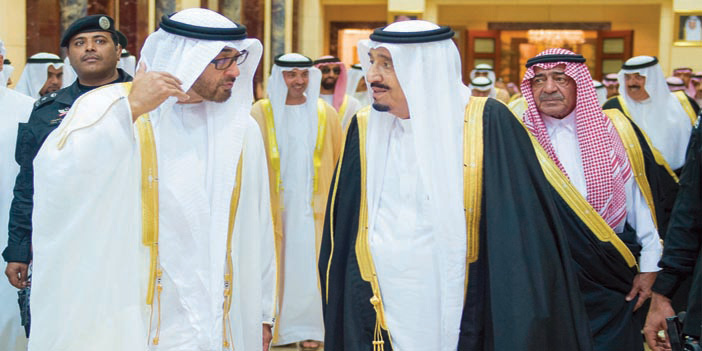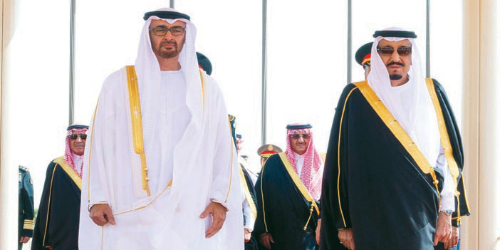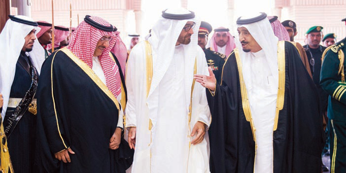 وبعد استراحة قصيرة في صالة التشريفات بالمطار صحب خادم الحرمين الشريفين الملك سلمان بن عبدالعزيز آل سعود، صاحب السمو الشيخ محمد بن زايد آل نهيان، في موكب رسمي إلى قصر الملك المفدى.