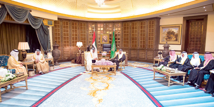 عقد خادم الحرمين الشريفين الملك سلمان بن عبدالعزيز آل سعود - حفظه الله - في قصره بالرياض أمس جلسة مباحثات رسمية مع صاحب السمو الشيخ محمد بن زايد آل نهيان ولي عهد أبو ظبي نائب القائد الأعلى للقوات المسلحة بدولة الإمارات العربية المتحدة.