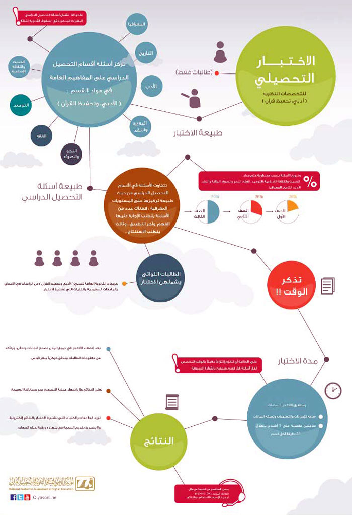 وأكد على الطلاب والطالبات الاستفادة من موقع التهيئة والتدريب لاختبار التحصيل الدراسي المجاني, والذي يهدف إلى رفع نسبة الاستعداد النفسي والمعرفي لدى المتقدمين قبل دخولهم الاختبار الفعلي، وذلك عبر موقع البرنامج على شبكة الانترنت: www.elearning.qiyas.sa , والذي يحتوي على ثلاثة أقسام, القسم الأول حول المفاهيم العلمية وتغطي مواد (الرياضيات، الكيمياء، الأحياء، الفيزياء) صممت بصورة جذابة وبطريقة تفاعلية، والقسم الثاني أمثلة تدريبية عبارة عن نماذج تدريبية تفاعلية مع تغذية راجعة تقدم بعد الاجابة عن كل مثال، وتحتوى على 100 مثال لكل نموذج, أما القسم الثالث فهو عبارة عن اختبارات تجريبية تتيح للطالبة الاستفادة من هذا النوع من التدريب لقياس المستوى حسب التخصص عن طريق هذه الاختبارات.