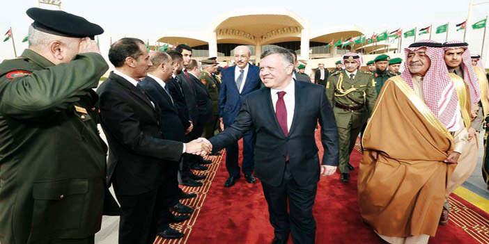 غادر جلالة الملك عبدالله الثاني بن الحسين ملك المملكة الأردنية الهاشمية الرياض أمس بعد زيارة رسمية للمملكة. وكان خادم الحرمين الشريفين الملك سلمان بن عبدالعزيز آل سعود - حفظه الله - قد ودَّع جلالته لدى مغادرته قصر خادم الحرمين الشريفين. كما كان في وداع جلالة الملك عبدالله الثاني بن الحسين بمطار الملك خالد الدولي صاحب السمو الملكي الأمير مقرن بن عبدالعزيز آل سعود ولي العهد نائب رئيس مجلس الوزراء، ومعالي نائب رئيس المراسم الملكية الأستاذ خالد بن صالح العباد، ومعالي سفير الأردن لدى المملكة جمال الشمايلة، وعدد من المسؤولين من مدنيين وعسكريين.