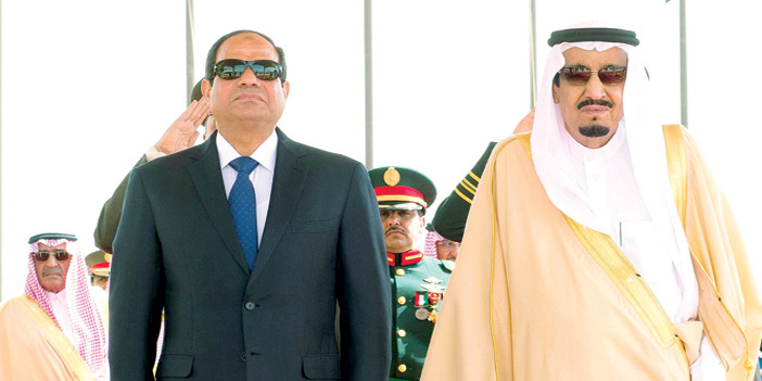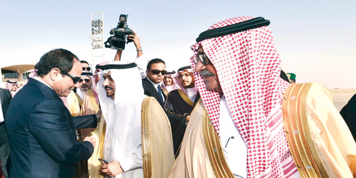 وكان الرئيس عبدالفتاح السيسي رئيس جمهورية مصر العربية قد وصل أمس إلى الرياض في زيارة رسمية للمملكة، وكان في مقدمة مستقبليه بمطار الملك خالد الدولي أخوه خادم الحرمين الشريفين الملك سلمان بن عبدالعزيز آل سعود. كما كان في استقبال فخامته، صاحب السمو الملكي الأمير مقرن بن عبدالعزيز آل سعود ولي العهد نائب رئيس مجلس الوزراء، وصاحب السمو الملكي الأمير فيصل بن بندر بن عبدالعزيز أمير منطقة الرياض، وصاحب السمو الملكي الأمير محمد بن نايف بن عبدالعزيز ولي ولي العهد النائب الثاني لرئيس مجلس الوزراء وزير الداخلية، ومعالي رئيس المراسم الملكية الأستاذ محمد بن عبدالرحمن الطبيشي، ومعالي سفير خادم الحرمين الشريفين لدى جمهورية مصر العربية مندوب المملكة الدائم لدى جامعة الدول العربية الأستاذ أحمد بن عبدالعزيز قطان، ومعالي أمين منطقة الرياض المهندس إبراهيم بن محمد السلطان، وسفير مصر لدى المملكة عفيفي عبدالوهاب. وقد أجريت لفخامة الرئيس المصري، مراسم استقبال رسمية، حيث عزف السلامان الوطنيان للبلدين، ثم استعرض حرس الشرف.