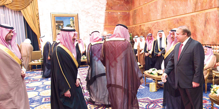 وقبيل المأدبة صافح رئيس وزراء باكستان أصحاب السمو الملكي الأمراء وأصحاب الفضيلة والمعالي وكبار المسئولين.