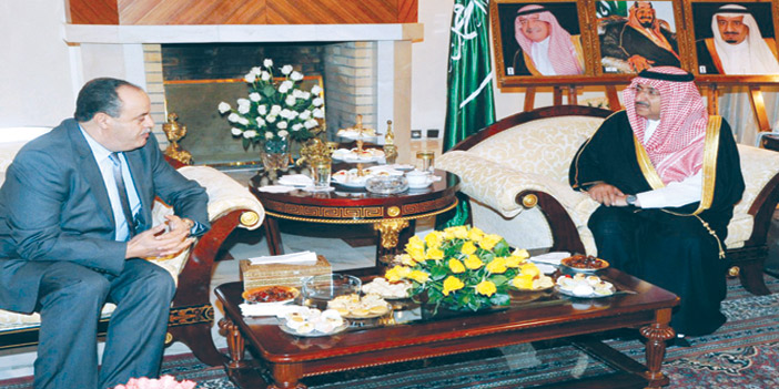كما استقبل صاحب السمو الملكي الأمير محمد بن نايف بن عبدالعزيز ولي ولي العهد النائب الثاني لرئيس مجلس الوزراء وزير الداخلية الرئيس الفخري لمجلس وزراء الداخلية العرب، في مقر إقامته في العاصمة الجزائرية مساء أمس معالي وزير الدولة وزير الداخلية بالجمهورية التونسية محمد ناجم الغرسلي والوفد المرافق له. وجرى خلال الاستقبال تبادل الأحاديث الودية ومناقشة الموضوعات المتعلقة باجتماعات مجلس وزراء الداخلية العرب الـ 32 الذي سيبدأ أعماله اليوم الأربعاء في العاصمة الجزائرية، إضافة إلى استعراض الموضوعات ذات الاهتمام المشترك بين البلدين الشقيقين.