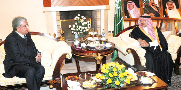من جهة أخرى، استقبل صاحب السمو الملكي الأمير محمد بن نايف بن عبدالعزيز ولي ولي العهد النائب الثاني لرئيس مجلس الوزراء وزير الداخلية الرئيس الفخري لمجلس وزراء الداخلية العرب، في العاصمة الجزائرية أمس, معالي وزير الداخلية في جمهورية مصر العربية اللواء مجدي عبدالغفار, والوفد المرافق له، على هامش اجتماعات الدورة الثانية والثلاثين لمجلس وزراء الداخلية العرب التي بدأت أعمالها في العاصمة الجزائرية في وقت سابق أمس.