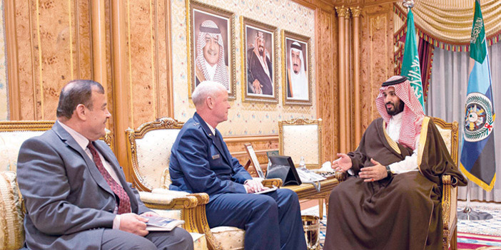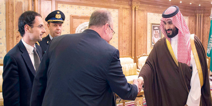 استقبل صاحب السمو الملكي الأمير محمد بن سلمان بن عبدالعزيز وزير الدفاع رئيس الديوان الملكي المستشار الخاص لخادم الحرمين الشريفين، في مكتبه بالمعذر مساء أمس الأول، سفير جمهورية إيطاليا لدى المملكة ماريو بوفو . وجرى خلال الاستقبال بحث الأمور ذات الاهتمام المشترك . حضر الاستقبال معالي مدير عام مكتب سمو وزير الدفاع الأستاذ فهد بن محمد العيسى والملحق العسكري الايطالي العقيد توماسو كولورافي. كما استقبل سموه، في مكتبه بالمعذر مساء امس الاول، رئيس بعثة التدريب العسكرية الأمريكية في المملكة اللواء توماس هاروود. وجرى خلال الاستقبال استعرض أوجه التعاون بين البلدين في الجانب العسكري وسبل تطويره. حضر الاستقبال معالي مدير عام مكتب سمو وزير الدفاع الأستاذ فهد بن محمد العيسى.