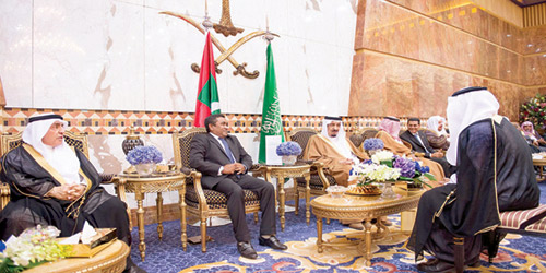 وقبيل المأدبة صافح رئيس جمهورية المالديف أصحاب السمو الملكي الأمراء وأصحاب الفضيلة والمعالي وكبار المسئولين.