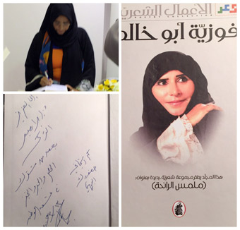 اما الكاتبة الاماراتية وفاء احمد الخديم التي وقّعت روايتها حدث في الجامعة الامريكية فقالت إنها سبق أن وقعت كتابها في معرض الشارقة للكتاب ومعرض ابو ظبي ومعرض الكويت وهذه الطبعة الرابعة من الرواية لكنها تحس هنا ان الجمهور السعودي اكثر حماسا ورغبة في القراءة وتقول عن روايتها انها موجهة أصلا للاسرة الاماراتية لكنها وجدت ان الشباب من الجنسين اكثر اقبالا على الرواية.