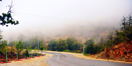 عانق الضباب قمم جبال سراة منطقة الباحة في مشهد رباني بديع وتغلغل بين أشجارها، ليهبط بانسيابيته المرنة إلى المباني والطرقات وينعش المكان برائحة النباتات الطبيعية التي تعطي النفس انطباعاً بالارتياح، وسط زخات الأمطار المتوسطة والغزيرة التي استمرت لساعات طويلة خلال هذه الأيام.