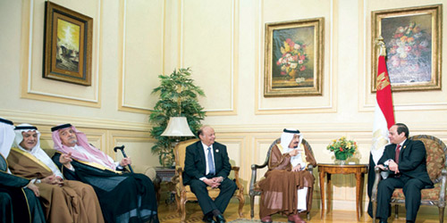 بحفظ الله ورعايته وصل خادم الحرمين الشريفين الملك سلمان بن عبدالعزيز آل سعود إلى مدينة شرم الشيخ أمس على رأس وفد المملكة العربية السعودية للمشاركة في مؤتمر القمة العربية في دورته السادسة والعشرين.. وكان في استقباله -أيده الله- فخامة الرئيس عبدالفتاح السيسي رئيس جمهورية مصر العربية. كما كان في استقباله صاحب السمو الملكي الأمير سعود الفيصل وزير الخارجية وصاحب السمو الملكي الأمير تركي الفيصل ومعالي سفير خادم الحرمين الشريفين لدى جمهورية مصر العربية ومندوب المملكة الدائم لدى جامعة الدول العربية الأستاذ أحمد بن عبدالعزيز قطان، ومديرو المكاتب وأعضاء سفارة المملكة في جمهورية مصر العربية والملحق العسكري السعودي العقيد ركن عبدالله الجاسر.. وبعد استراحة قصيرة في صالة التشريفات بالمطار صحب فخامة الرئيس عبدالفتاح السيسي أخاه خادم الحرمين الشريفين الملك سلمان بن عبدالعزيز آل سعود إلى مقر انعقاد القمة العربية.