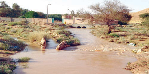 وأسهمت الأمطار في جريان الماء مشكلاً نهراً صغيراً، امتد من السد مروراً بالمزارع والمنازل القديمة الطينية عبر الطرقات الضيقة.