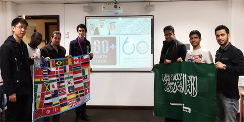 وقد شهد المجتمع الدولي أيضاً تفاعلاً سعودياً خارج المملكة من خلال تفاعل عدد من الطلاب السعوديين في مدينة كامبرج ببريطانيا؛ إذ قام فريق ساعة الأرض السعودية بتنظيم فعالية تتحدث عن ساعة الأرض لتثقيف الطلاب السعوديين والمجتمع البريطاني كله في المدينة، وذلك من خلال شراكة مجتمعية مع المكتب الدولي بجامعة أنجليا روسكين. ومثل الجامعة مديرة المكتب الدولي كارولين شاناهان، ومن الجانب السعودي رئيس ساعة الأرض السعودية عجلان العجلان.