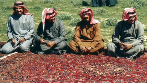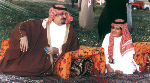 الملك فهد بن عبدالعزيز مع نجله الأمير عبدالعزيز بن فهد في المخيم الملكي بحفر الباطن