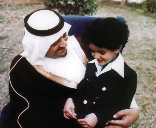 - الملك فهد بن عبدالعزيز مع نجله عبدالعزيز أثناء طفولته