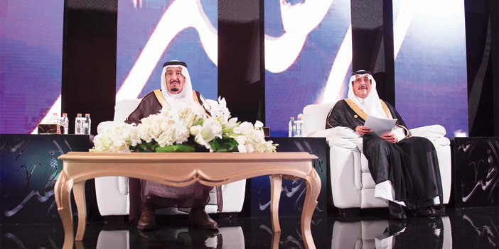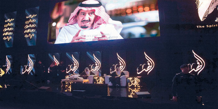 عقب ذلك ألقى خادم الحرمين الشريفين الكلمة التالية : بسم الله الرحمن الرحيم، يشرفني في هذه الليلة أن أكون بينكم لنحتفي بوالدي الثاني فهد بن عبد العزيز.