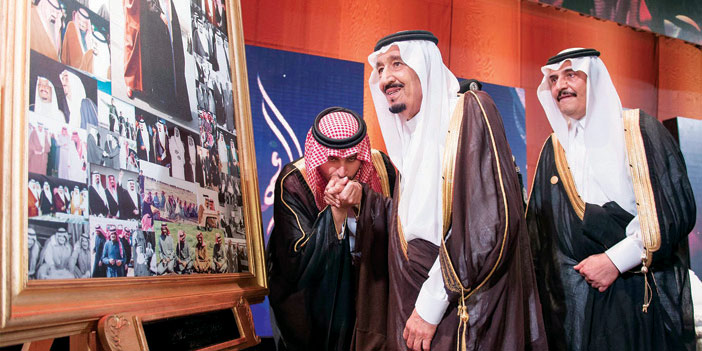 وأردف قائلاً: فبالأمس القريب رعيتم الاحتفاء بمناسبة مرور مئة عام على تأسيس المملكة التي هي فكرتكم ورؤيتكم وفاءً منكم للملك المؤسس عبد العزيز بن عبد الرحمن الفيصل آل سعود - رحمه الله - ولرجالاته في أنحاء الوطن ولإخوانكم الملوك الذين واصلوا مسيرة البناء والتنمية؛ فقد ضخت تلك المناسبة التي كنتم ـ حفظكم الله ـ الداعي والراعي والموجه لها الحيوية والنشاط والفاعلية في شرايين تاريخ الوطن.