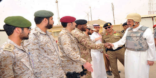 كما قام سموه بزيارة لمركز العمليات بالخوبة واستمع من قائد قوة جازان اللواء ركن مرعي بن سالم الشهراني وقائد لواء الملك عبدالله الثامن عشر للمهام الأمنية الخاصة اللواء الركن عبدالله بن سعد أبو جرفة لشرح مبسط عن القوات والمهام والواجبات المناطة بها في الذود عن ثراء وطننا الغالي وفق التوجيهات السديدة للقيادة الرشيدة.