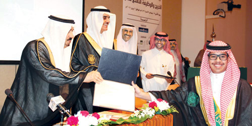 إثر ذلك تشرّف وزير الخدمة المدنية، رئيس مجلس إدارة المعهد الأستاذ خالد بن عبدالله العرج، بتقديم درع المعهد التذكاري لراعي الحفل صاحب السمو الملكي الأمير فيصل بن بندر بن عبدالعزيز أمير منطقة الرياض، وفي ختام الحفل افتتح سمو أمير منطقة الرياض معرض التوظيف المصاحب، الذي شارك فيه (26) جهة حكومية وأهلية.